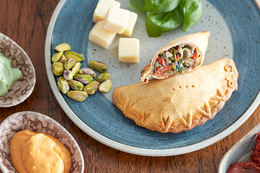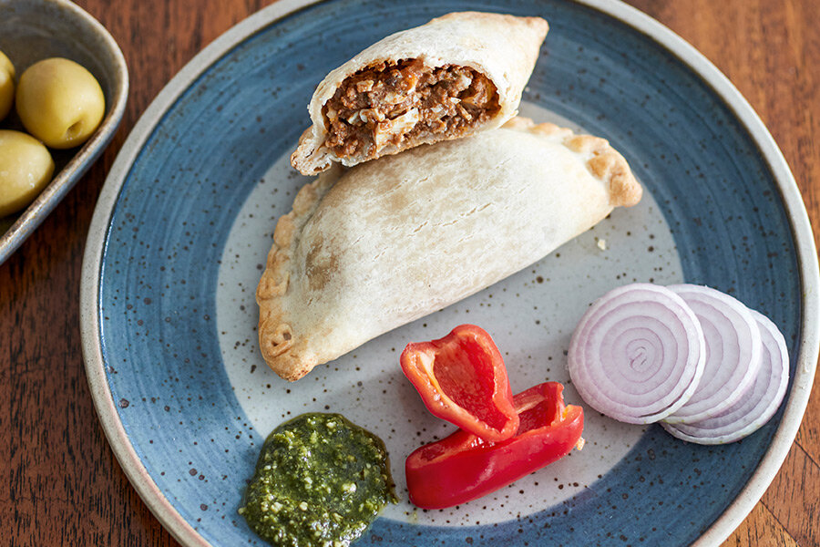 Our meat pannies are the most traditional and popular variety. This Pannie has regional varieties which in most cases include the following ingredients: mincemeat, onion, hard-boiled egg, paprika and cumin. In addition, our pannies also include olives, sweet pepper and green onion