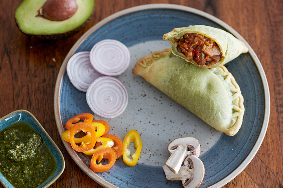 Includes typical Latin American condiments such as the dry leaf of maize and anatto which have a major role in our vegetable stew made by courgette, sweet pepper, mushrooms and potatoes. Very recommended for vegans!